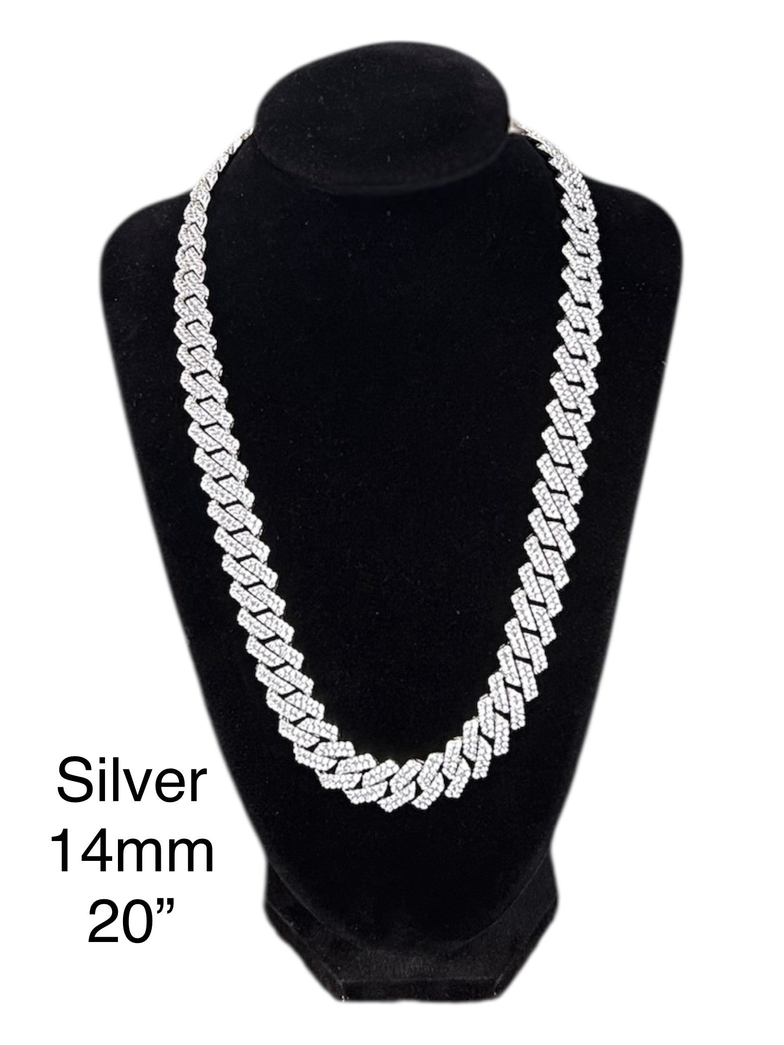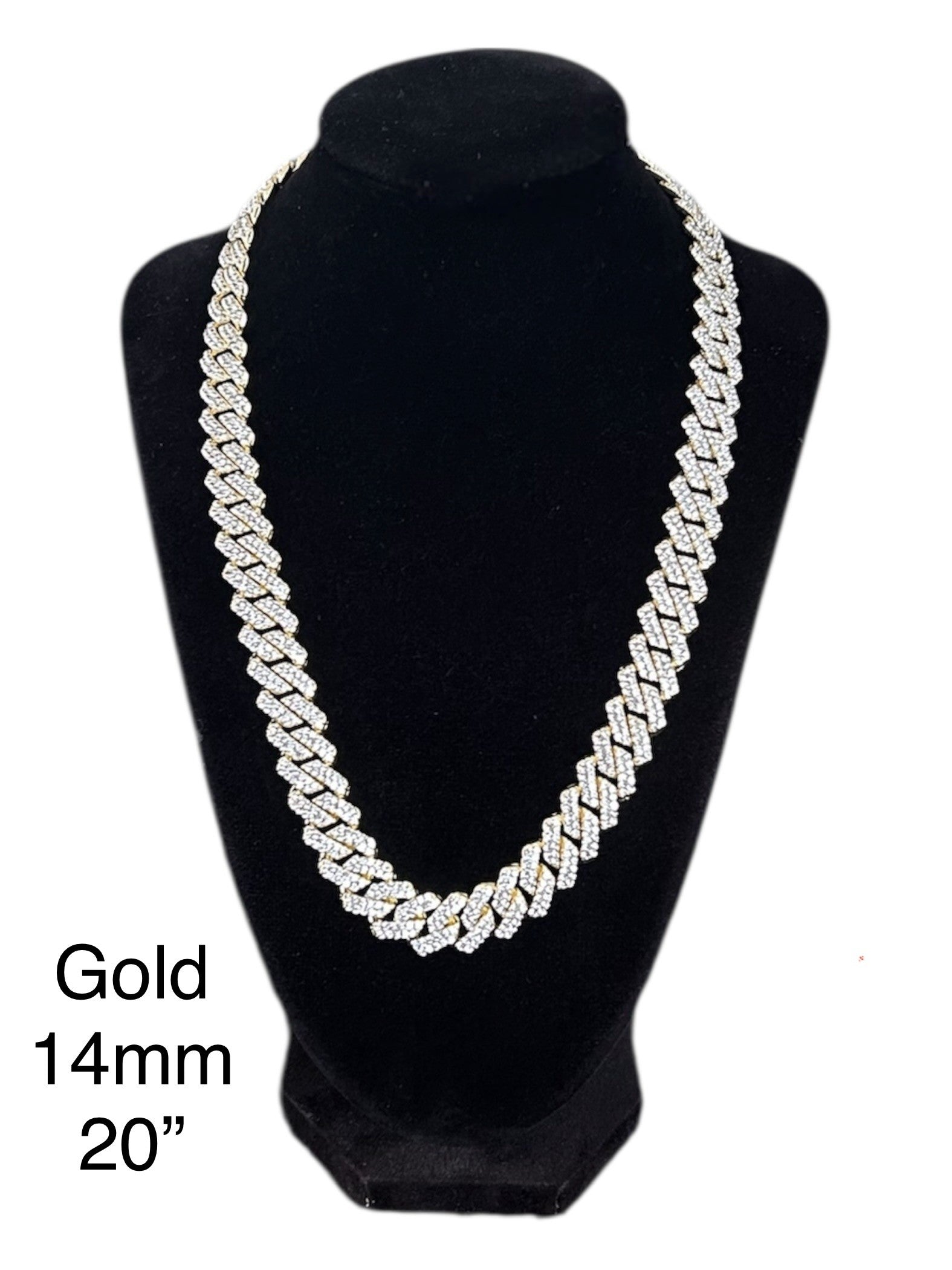 Elevate your game with the DRIPPY ICED CHAINS—the hottest accessory taking the baseball field by storm. This 20" chain features a bold 14mm link design crafted from durable zinc alloy metal and adorned with sparkling rhinestones for maximum shine. Available in classic Gold or Silver finishes, these chains deliver that premium iced-out look that turns heads both on and off the diamond. Perfect for players who want to stand out and bring style to their gear.