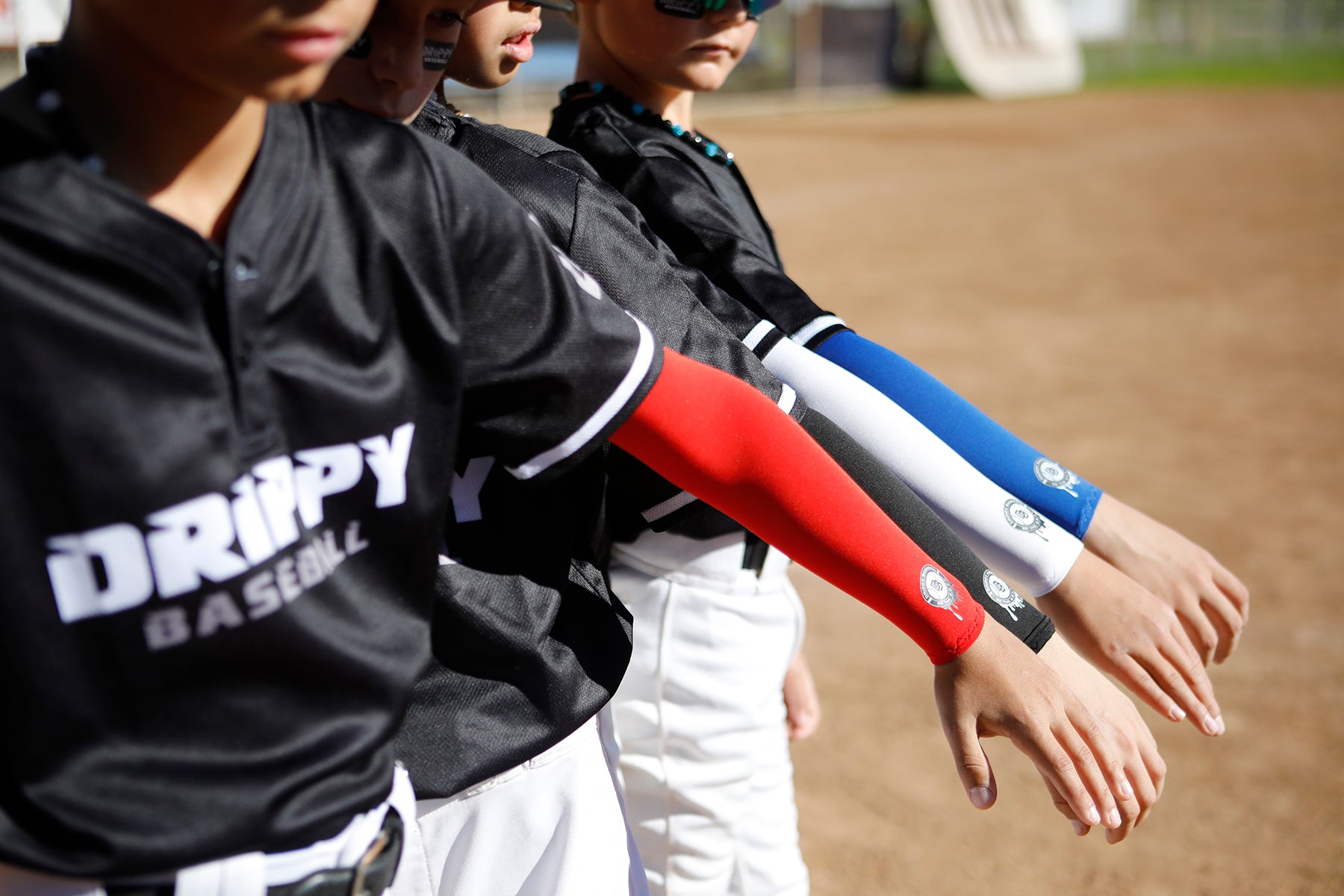Our FULL-LENGTH SOLID COLOR DRIPPY SLEEVES are where it's at! Made with anti-slip, breathable nylon fabric, they provide UV protection and have a nice elasticity for a comfortable fit. Designed to cover from the wrist to bicep, these sleeves are suitable for kids, teens, and adults alike.
